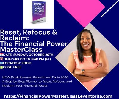 In this empowering, high-energy session, I’ll guide you through the core strategies from my new release, Rebuild and Fix in 2026: A Step-by-Step Planner to Reset, Refocus, and Reclaim Your Financial Power.